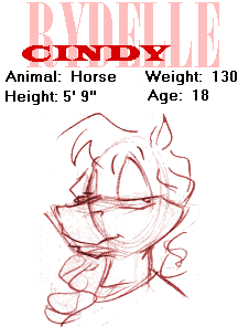 Cindy is definitely the most level-headed member of the cast. Elegant, proper, and ladylike, she seems almost out of place in the cast. She never loses her temper, never engages in shouting matches, and always comes away from the latest wackiness competely unscathed. However, these traits do make her an excellent moderating force amongst the boisterousness of everyone else--a stabilizing, calming factor. Her mere presence seems to make everyone behave a little better. She isn't all vanilla and poetry, however, so do not make the mistake of understimating her. She has a sharp mind fine-tuned for sciences, and a strict exercise regimen that makes her much stronger than she looks. Most guys think they know what she needs, are are quite wrong. She knows what she wants, but just has too much class to reach for it. You can probably guess that she and Tony will be mutually interested in each other but won't do anything about it for quite awhile.